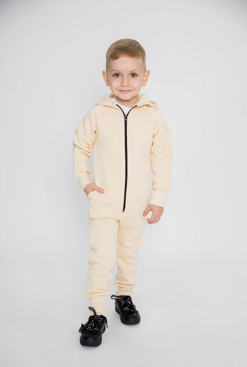 318-СЛ. Комбинезон на молнии с капюшоном, сливочный, хлопок 65%, 35% ПЭ, 3 нитка толстовка (начёс) 86,92,98,104