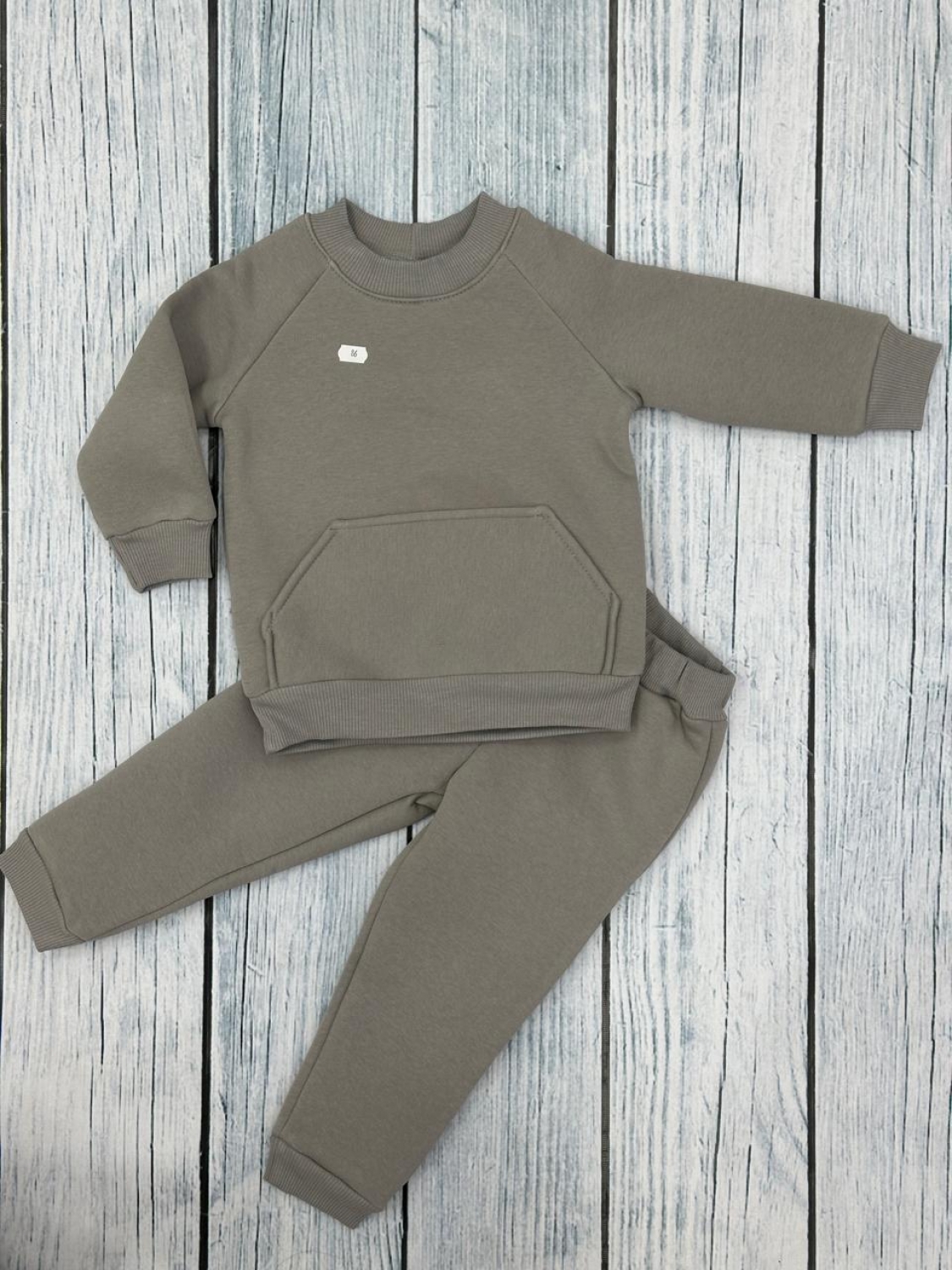 Купить оптом 297-СЕР. Свитшот + Штаны, хлопок 65%, 35% ПЭ, 3-х нитка (начес) серый ,80,86,92,98,104 в Черкесске